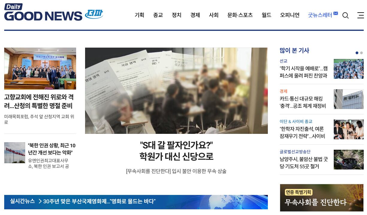 최근 무속인들은 굿판에 머물지 않고 '고학력 입시 전문가'로 변신하고 있다. 수도권 한 신당은 '대학입시 무료 상담' 현수막을 내걸고, 명문대 출신에 행정고시 준비 이력을 내세운다. 심지어 수험생 대상 심리 상담·미술치료를 곁들인 '맞춤형 솔루션' 제공을 홍보하며 학부모들을 끌어들이고 있다.