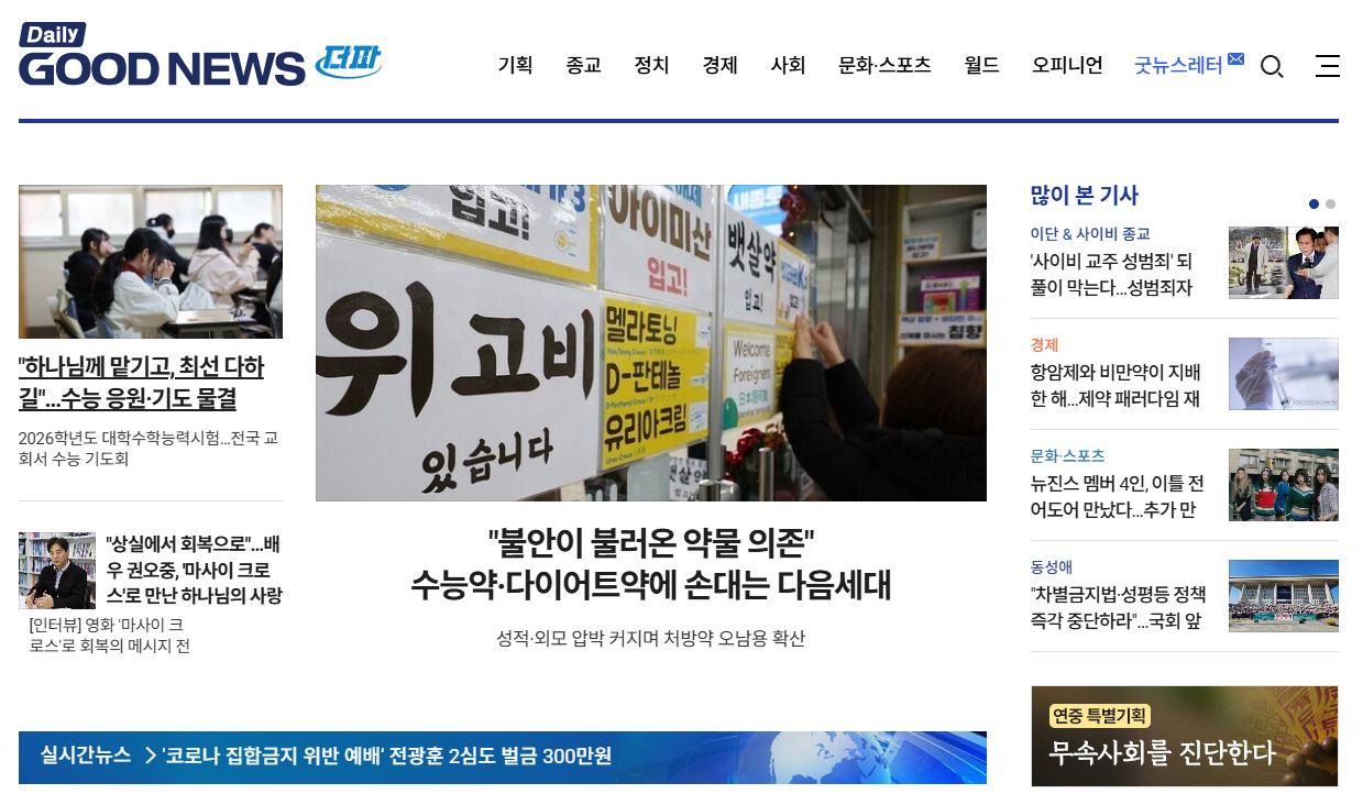 샬롬, 데일리굿뉴스 독자 여러분! 🙌 한 주간의 교계 소식을 전해드리는 굿뉴스레터입니다.😊 이번 주일은 추수감사주일인데요. 하나님께서 우리의 삶에 허락하신 열매들을 돌아보며, 감사와 기쁨이 가득한 시간 되시길 축복합니다.✨ 살다 보면 ‘돌아보니 은혜’였던 순간들이 참 많죠. 그러니 지금은 이해되지 않는 일도, 훗날 "아, 이를 위함이었구나" 고백하게 하실 줄 믿습니다. 그럼, 11월 두 번째 굿뉴스레터 시작합니다! 📬💕 |